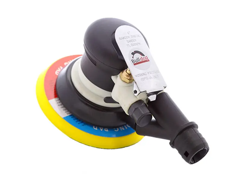 Sanding pad: 6 (152mm); Free speed: 10,000 rpm; Air inlet (PT): ¼”; Air Hose (ID): 3/8”; Average Air Consumption: 15.89 SCFM (450 l/min); Working Pressure: 6.3 bar (90 PSI); Length x Height: 195mm x 143mm; Weight: 0.91 kg; Sound level: 77dBA; Sound level: 77dBA