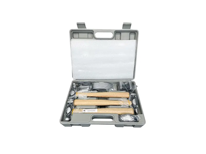 The Bulldog Abrasives Homegrown Panel Beating Repair kit is forged from steel and undergoes heat treatment to ensure durability and longevity. The kit includes a variety of hammers and dollies, each with a pecan wood handle for a comfortable grip. The heads of the hammers have a polished working face and a spray-treated non-working face.