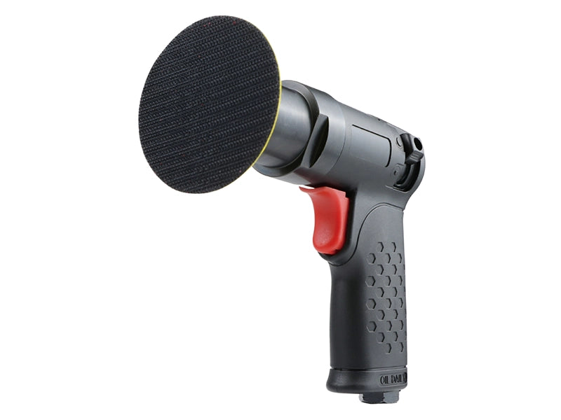 Horsepower: 0.38 HP; Pad Size: 76 mm; Free Speed: 5500 rpm; Length: 130 mm; Air Inlet: 1/4 “; Air Hose I.D: 3/8 “; Avg. Air Consumption: 3 cfm (85 L/min); Noise Level: 83 dBA; Vibration: 2.5 m/s2; Net Weight: 0.6 kg